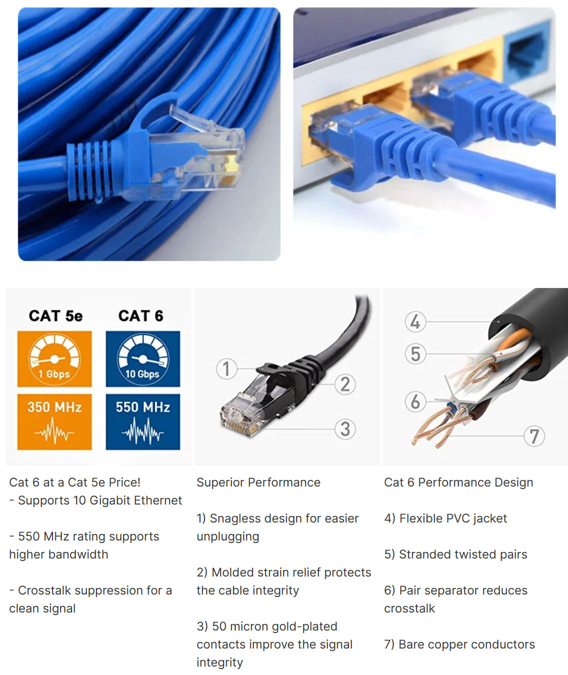 Ethernet Cable 600MHz Gold Plated RJ45 1m 以太网电缆 600MHz 镀金 RJ45 1m